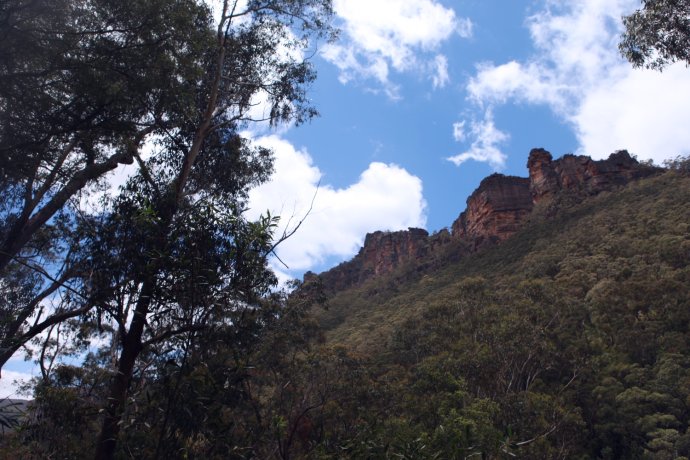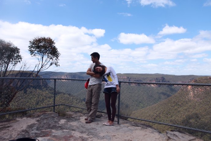A morning of “real” hiking with no tourist markers later, we stumbled into a lane of lovely homes—mountain living, pure air, perfect skies, beauty that numbs. Who wouldn’t want this? We continued searching for the “famous” spots—Katoomba, Echo Point—finally spotted a sign: Echo Point! Crowds confirmed it—the Three Sisters. Honestly, imagination required; we snapped a few and moved on.