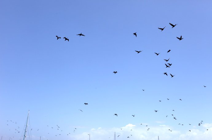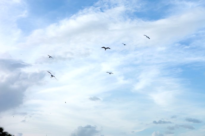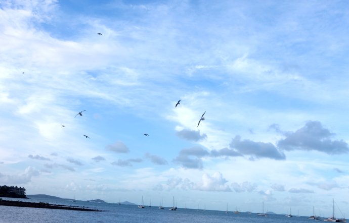Seagulls in flocks made the cove lively and sweet.