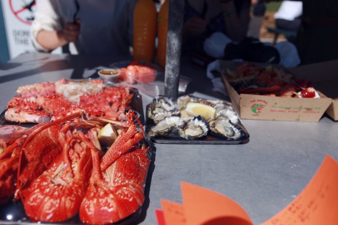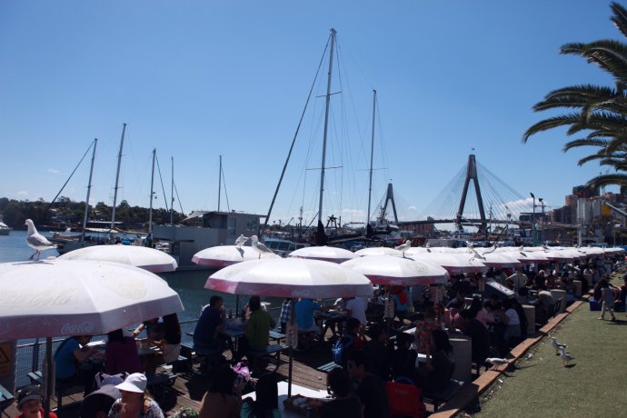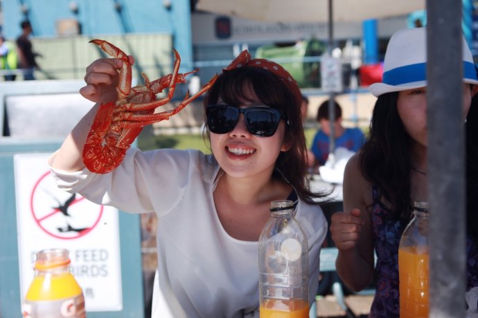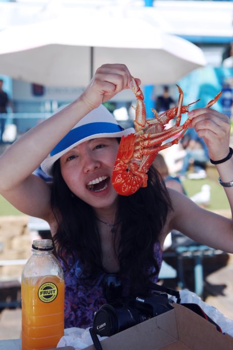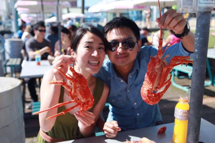 The afternoon highlight: Fish Market feast. We skipped GPS and navigated by paper/map—when we saw “Welcome” in Chinese, it felt homey. The market sells raw or cooked—steam-to-eat or have it cooked for you. Lobsters, spanner crabs, salmon, mud crabs galore. We fulfilled our lobster vow—plus crab legs, oysters, salmon—then devoured it al fresco by the harbor, with seagulls and sea views. No “most” joy—only “more.” AUD 33 pp.
