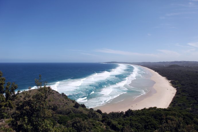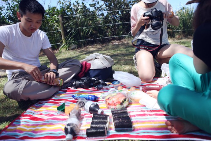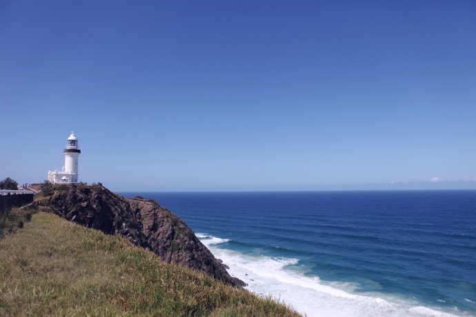 【Day 3】 2012.01.26 Breakfast kicked off Day 3—charred cookies but delicious; Aussie corn was plump and sweet. We slept in on the Gold Coast, ate, checked out, bought extra insurance at AVIS (AUD 128), and hit the road at 11. Next two days: G.C. to Sydney—about 1,200 km by highway. Self-drive means wandering—ahead matters, but so does everything between. The east coast towns share themes: lighthouses, sea, sand, churches. First stop: Byron Bay (76 km)—Australia’s easternmost lighthouse and a bohemian beach.