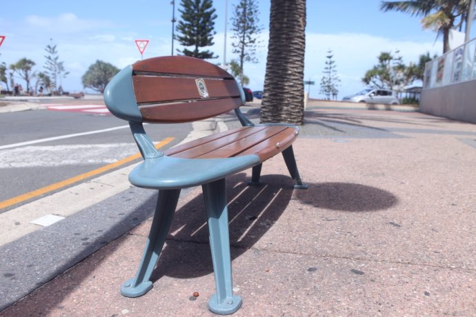 Benches shaped like surfboards—adorable.