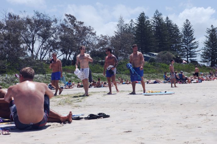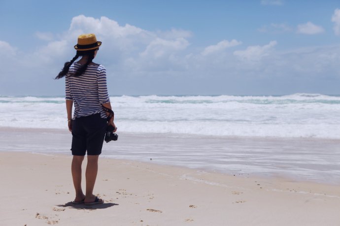 From fields to sea in a blink—Byron felt so natural. Locals love this town: surfboards, beach balls, friends or family picnicking. We know we can’t truly blend in, but we tried to be low-key: found a patch of sand, lay back, soaked in sun. I still couldn’t resist snapping surfers and stunners with a “cannon”—and felt better seeing others with bigger lenses. Authentic joy is worth keeping. Fresh off the surf—what a look.