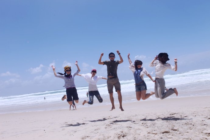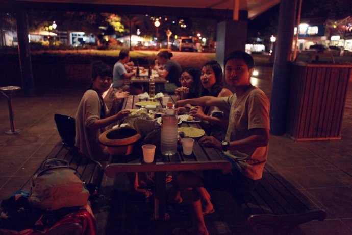 【Day 2】 2011.01.25 You only know why you walk when you truly walk—not to scan others, but to discover yourself. Sun, beach, blue sky, white clouds—their meaning is to make us smile and fall in love at a glance. Qian Zhongshu wrote: travel reveals character; it’s tiring, troublesome—your true self shows. After this trip, what made it special were friends perfectly in sync. Our 5: me and Tutu’s mom from Beijing; “Dong Ge” (a junior alum), now in Singapore, with his girlfriend “Bubble”; Nic, a grad student in Australia, a travel-planning wizard. All love food, fun, adventure, thrills—hence endless joy. Group photo (L→R): Tutu’s mom, Bubble, Dong Ge, Nic, and me “Chibao.”