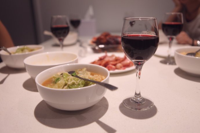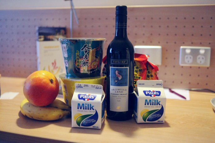 Back at the apartment after 10 pm, our “chefs” made dinner: instant noodles, pan bacon, roast chicken, tomato eggs—and Australian red wine. After nature’s show, a nightcap to end a rich, thrilling day. Goodnight!
