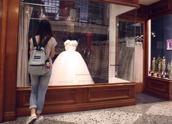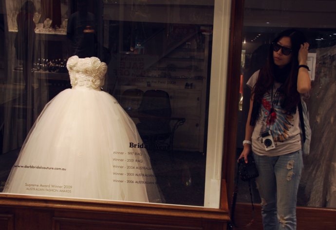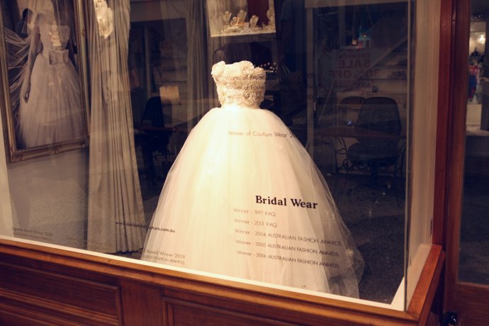 Our camera crew never misses—wedding gowns in the windows stole a lot of film.