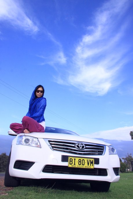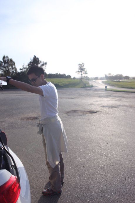 At road’s end, no one else around. We had to leave something behind—so we ran and yelled, not just for photos but for ourselves. Then we started “modeling” with our Corolla—everyone took turns as the ad face.