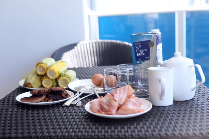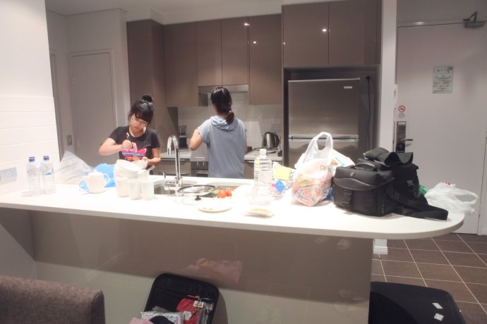 After lunch we checked in at Meriton. G.C. is compact—after a few loops you barely need GPS. This chain has 2–3BR apartment hotels across Aussie cities—great for families or groups. Split five ways, cheaper than hotels, plus a kitchen. We made full use: cookware, microwave, oven, even dishwasher, plus laundry with washer/dryer. We truly felt like we lived in Australia.