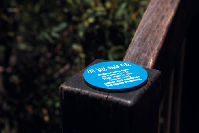 The sign says: life began here—preserved since dinosaur times. Protect it. Life Was Begin Here!