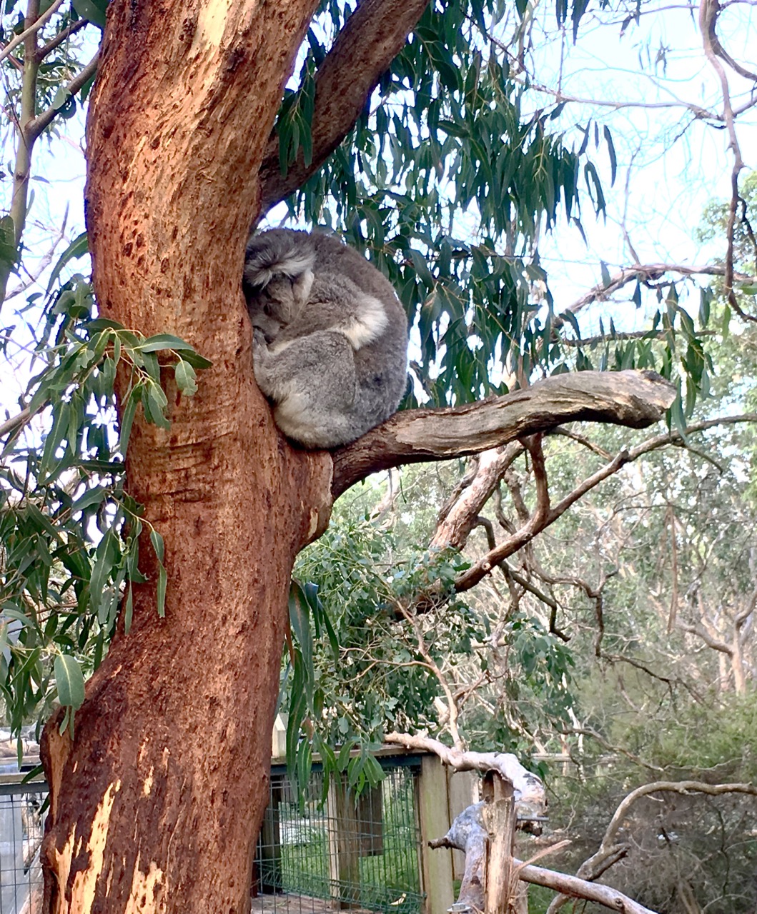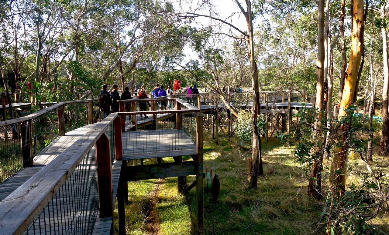 Next stop: the Koala Conservation Centre—now we’re on Phillip Island proper. These koalas aren’t for posed photos; they hide in outdoor trees, and you need sharp eyes to spot them. Elevated boardwalks protect the undergrowth and make it easier to observe koalas up in the branches.