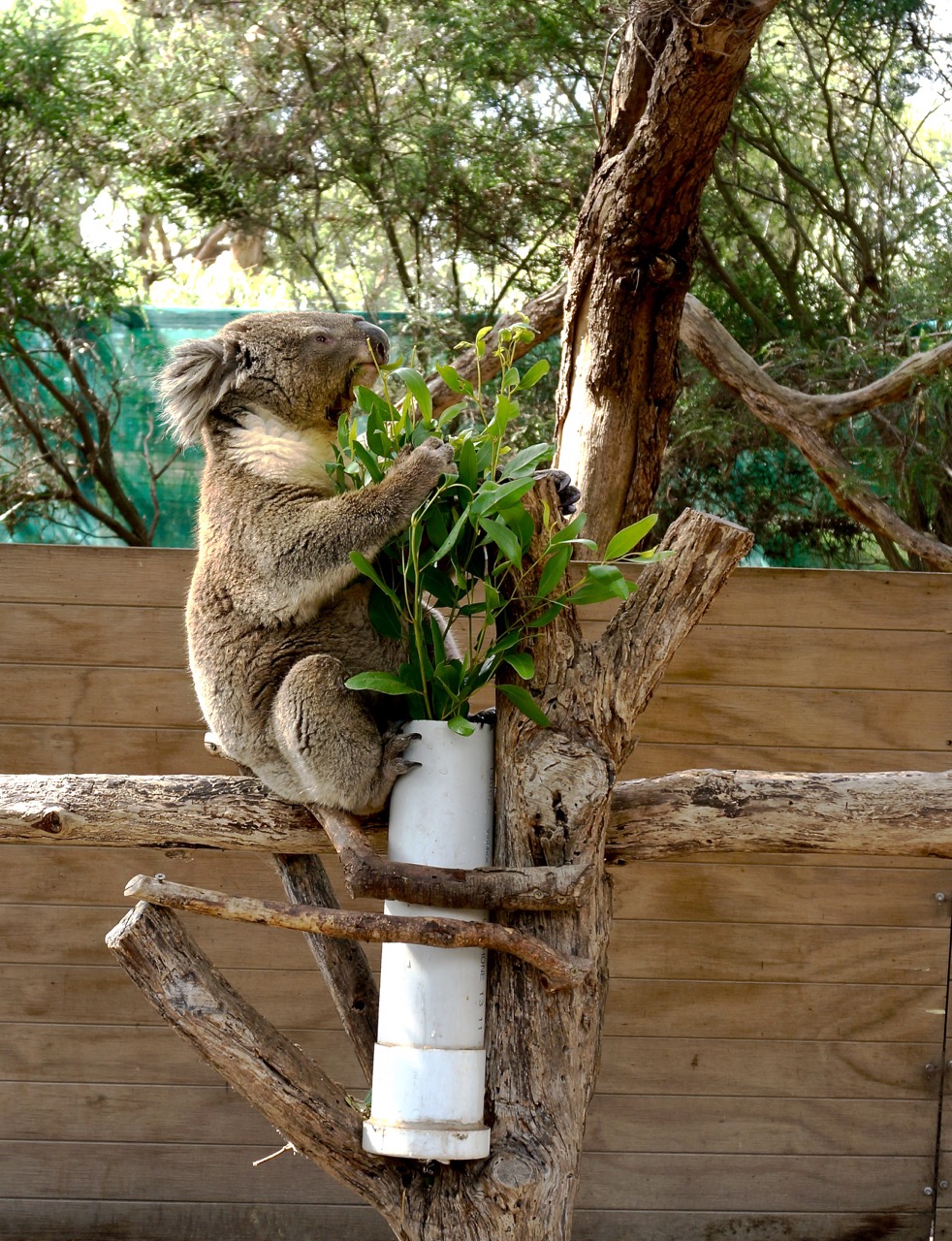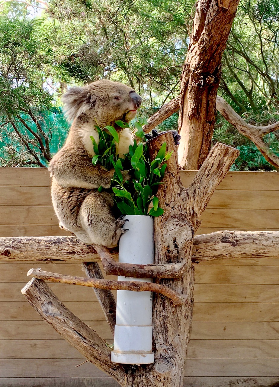 Koalas are the stars here. Two koalas sat on their thrones, elegantly munching leaves and barely moving, with staff attending nearby. To take a photo with a koala you need to buy a ticket at the visitor center. I’d spent too long with the wallabies and ran out of time, but the staff kindly stepped aside so I could take some nice koala shots.