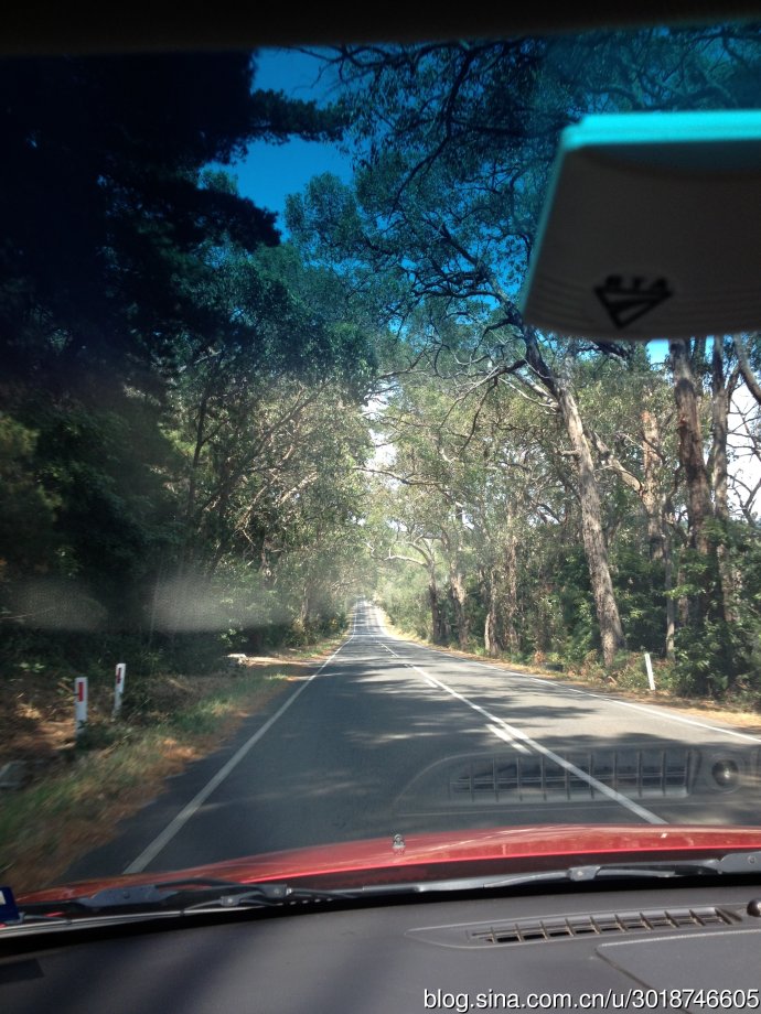Driving through a little forest toward the winery. Saw road signs warning about kangaroos appearing along the way.